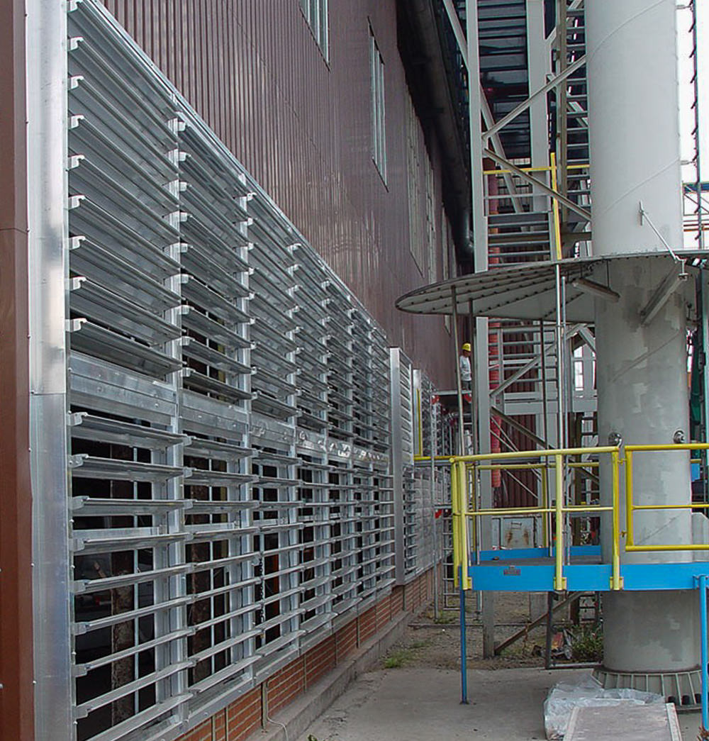 Der Jalousietyp Thunderbird zeichnet sich durch seine hervorragenden aerodynamische Eigenschaften aus. Die sehr gute Regelcharakteristik und die hohe Zuverlässigkeit in der Funktionalität haben sich im rauen Industriealltag bewährt. Die Regeljalousie wird in Gebäuden mit hohen Anforderungen an die Zuluftmenge eingesetzt. Wir produzieren sie als einschalige, doppelschalige und akustisch ausgekleidete Version. Durch das standardisierte Fertigungsverfahren sind alle Zwischengrößen in Höhe und Breite lieferbar. Die Thunderbird-Jalousie kann durch Pulverbeschichtung oder Eloxierung in die Farbgestaltung des Gebäudes einfließen oder sie sogar bestimmen.
